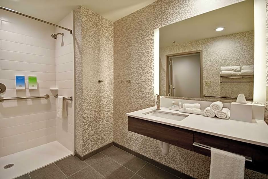 2Queen Accessible Roll In Shower Studio Nosmk is 301 square feet and includes 2 queen-size beds 150-154 width plus living room and is Wheelchair-accessible.